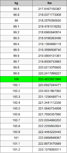 How Many Lbs Is 100 Kg